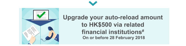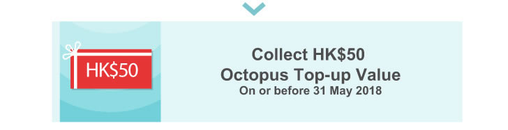 Upgrade your auto-reload amount to HK$500 get $50 Octopus Top-up Value, click here to learn more