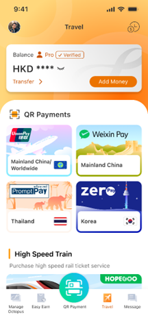 Octopus introduced a dedicated "Travel Corner" within its app.