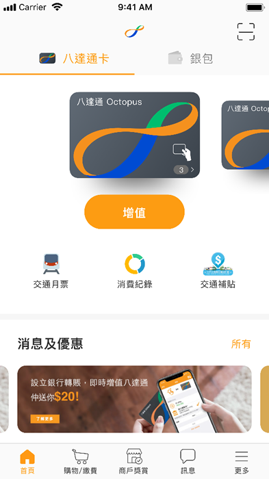 重新设计的八达通App,清晰地将八达通卡和八达通银包功能分开,令客户可易于找到相关的产品和服务。 ![]() |