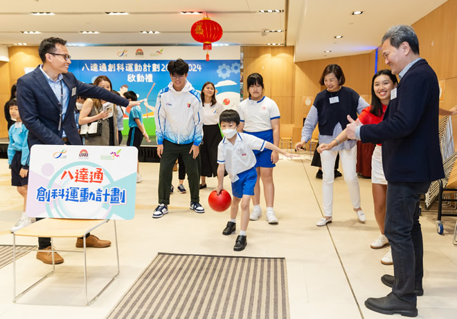 启动礼现场设有四个体育项目的体验摊位,出席的学童和嘉宾在导师、教练及八达通义工的协助下,一同体验不同运动,了解与该运动项目相关的运动科学和知识,寓教于乐,寓学于趣。