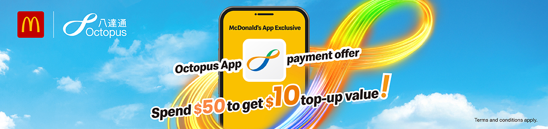 Hurry — rewards are available on a first-come, first-served basis while the quota lasts. Don’t miss out on this tasty deal! Pay with Octopus and enjoy tasty rewards as you dine. Download the latest version of McDonald’s App here: https://mcds.hk/octopus