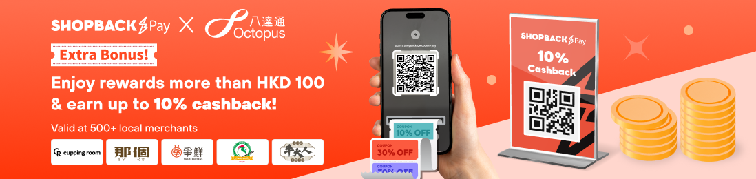 From now until 31 Dec 2025, dine at 500+ restaurants across Hong Kong and pay with the Octopus App through ShopBack Pay to unlock over HKD 100 in instant discounts and up to 10% cashback.