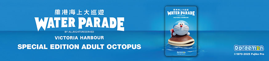 To celebrate the world’s first Water Parade, Octopus is launching a Doraemon – Water Parade Special Edition Octopus, featuring the globally beloved character Doraemon, who transforms into a giant floating inflatable sculpture and parading across Victoria Harbour.