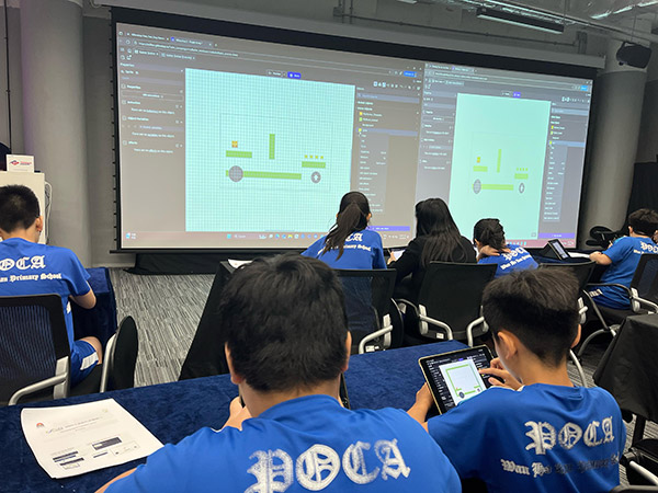 To further enhance students’ exposure to STEM, the Scheme organised several sports training experiences, including Formula Racing and golf through “Innovative Sports Fun Days” at Cyberport, supported by Octopus volunteers. With their guidance, students also learned how to create mobile games and virtual reality (VR) applications and had the opportunity to design mini- games and virtual scenes, deepening their understanding of innovation applications across various fields.