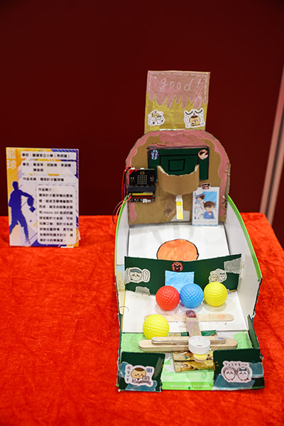 Basketball group: Using environmentally-friendly materials such as cartons and plastic bottles, along with Micro:bit (microcomputer) and sensors, to create an automatic basketball scoring system and basketball machine, improving scoring accuracy. |