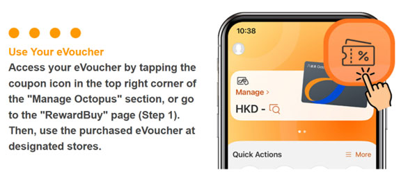 Through the Octopus App, users can complete the entire process, from selecting to purchasing eVouchers, all in one place, without switching apps or performing complicated steps. Simply open the Octopus App, log into the “RewardBuy” platform, and browse through the selection of handpicked eVouchers. Whether for dining, beverages, or shopping, users can pay and use the vouchers instantly (while stocks last), a simple and time-saving experience.