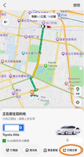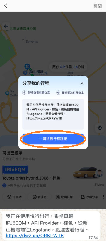 家人好友可点选连结实时查看行程及车辆位置
