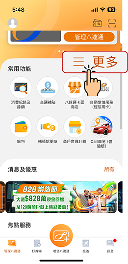 - 1. 于「管理八达通」页面点选「常用功能」中的「更多」