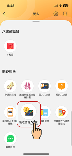 请带同你的乐悠咭,到位于指定港铁站及商场内的八达通服务站领取现金回赠。