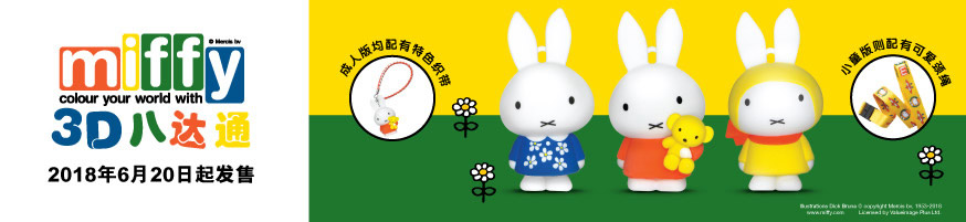 来自荷兰的小兔子Miffy以萌爆的样子加上经典的交叉嘴巴,俘虏了万千粉丝的心!今个夏天,八达通首度推出一式三款的「Miffy 3D八达通配饰」,两款成人版Miffy分别身穿生日小花裙或经典橙裙仔,并配有特色织带 ; 小童版Miffy则以黄色飞机师造型亮相配以可爱颈绳,为Miffy粉丝今个夏天加添缤纷色彩!