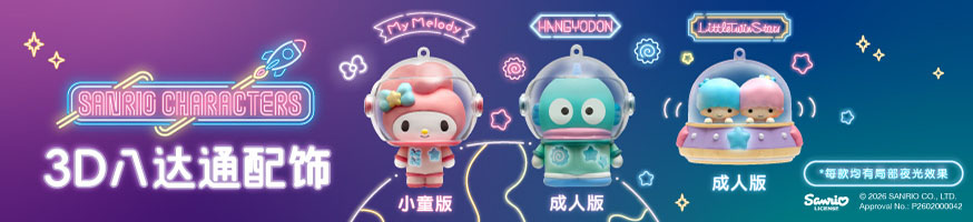 Sanrio characters八达通配饰再度登场!新系列首次以太空为主题,经典角色配上可爱太空造型。Little Twin Stars 坐上太空船翱翔天际,而My Melody 及 Hangyodon 穿上太空衣,头盔更可以打开。此外,配饰上的太空船或太空衣均加入夜光元素,在漆黑的环境下可以发光。两款成人版八达通配饰均附有金属链,小童版My Melody则配有可爱挂颈绳,方便随身携带。喜爱Sanrio characters的粉丝们,绝对不容错过。