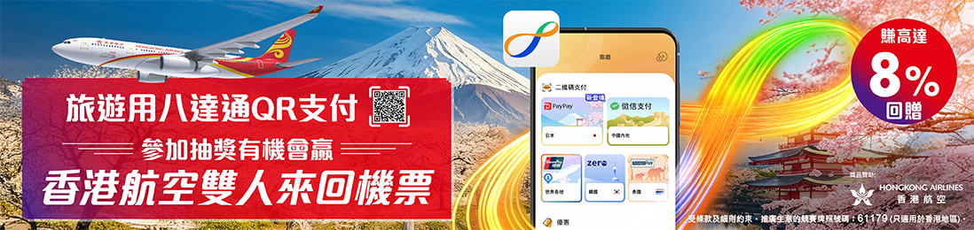 [高達8%回贈+機票抽獎] 用八達通App QR支付,旅遊畀錢似Local!
