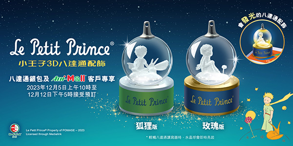 (香港,2023年12月1日)法國經典童話《小王子》在1943年於紐約出版,為慶祝小王子80周年,八達通卡有限公司首度推出附有LED燈效會發光的3D成人八達通配飾,讓小王子再度陪伴各位一同踏上夢幻旅程!