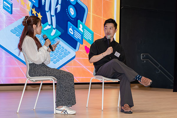 - 香港社會服務聯會資訊科技資源中心總經理陳思朗先生(右)在啟動禮上分享其對AI科技應用的看法。